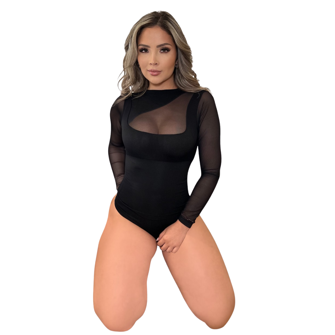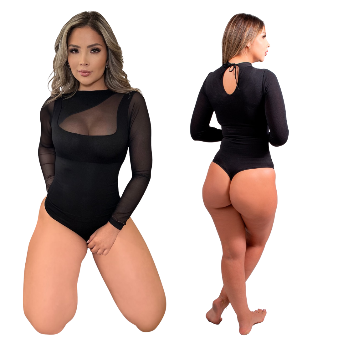 "Luce elegante y sexy con nuestras mangas en randa exclusiva. Parece un body de alta costura por fuera, pero moldea tu cintura y aplana tu abdomen por dentro."